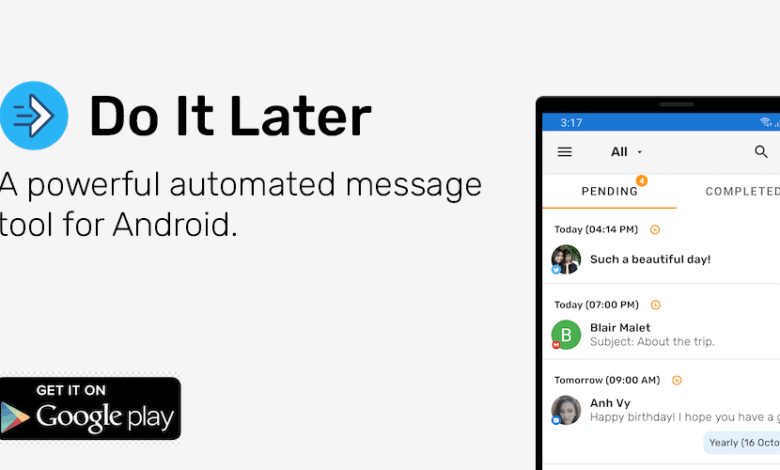قم بذلك لاحقًا – ستساعدك رسالة SMS التلقائية على الاستجابة للرسائل تلقائيًا بسهولة أكبر من أي برنامج آخر. سوف يعين نفسه ، والتفكير في المحتوى الصحيح للرد على المرسل من خلال الرسائل النصية أو المكالمات ، أو ربما عن طريق البريد الإلكتروني. ليس فقط ، سيكون له دور فريد وسيكون مفيدًا للغاية بالنسبة لك لإرسال رسائل كبيرة إلى كائنات مختلفة.